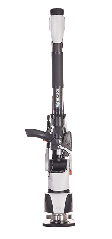 非接触式便携式三坐标测量臂是海克斯康集团公司推出的柔性测量系统-RA8740-7,配套RS6 蓝光扫描测头。该测量臂设备质量为10.2kg,测量范围可达4.48m,单点重复精度为0.046mm。扫描仪扫描精度±26μm,指标国际领先。