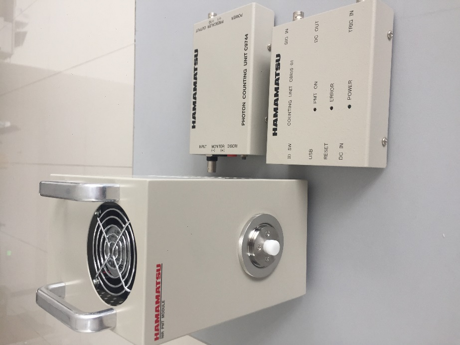 滨松光子计数系统,包含H12397A-75近红外光电倍增管模块和C9744+C8855-01光子计数模块,可实现波长950-1700 nm微弱近红外光高灵敏探测。该光子计数系统用于光泵频率上转换的相干太赫兹/中红外少光子至单光子级探测。